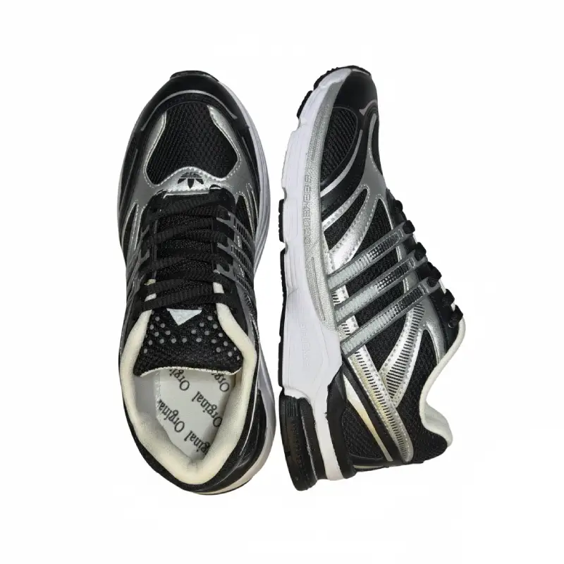 - برندینگ (Branding): سه خط معروف آدیداس به صورت براق و نقرهای متالیک روی قسمت میانی پا (Midfoot) کاملاً مشهود است.