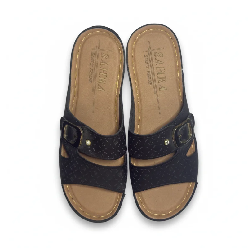دمپایی زنانه مشکی طبی سگک دار
