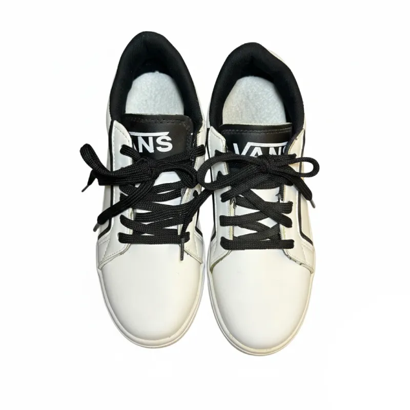 این مدل ونس زنانه سفید با خط مشکی، ترکیبی از سادگی و استایل روزمره است که بهراحتی با انواع لباسها ست میشود.