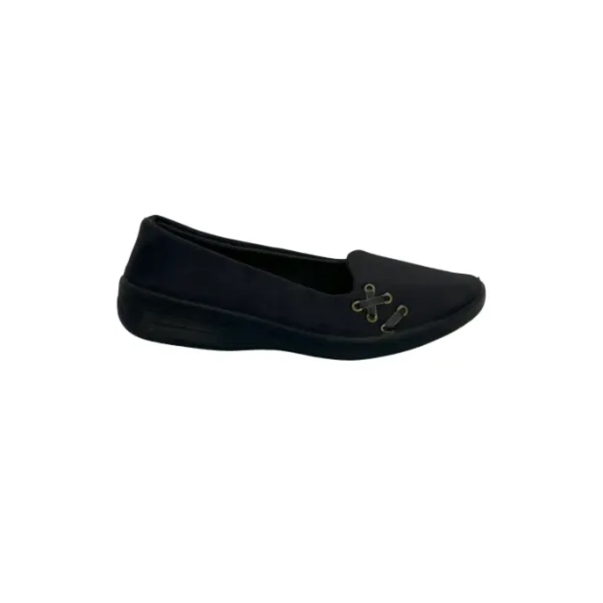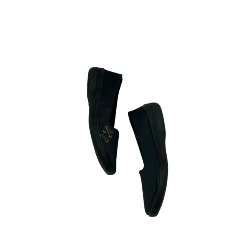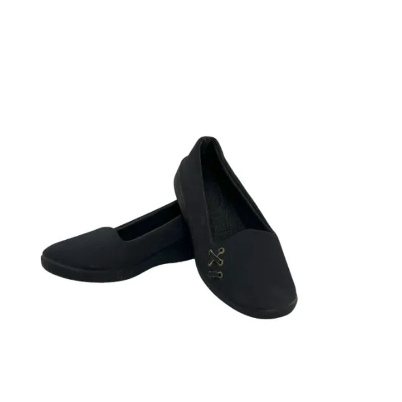 طراحی کلاسیک .بهترین دوست شما برای روزهای پرمشغله است. رنگ مشکی و رویه یکدست آن به راحتی با هر لباسی ست میشود، و تزیینات ظریف ضربدری در قسمت پنجه، جلوهای خاص و متفاوت به سادگی کفش بخشیده است.این کفش بخاطرسبکی ساعتها استفاده پای شما را خسته نمیکند،