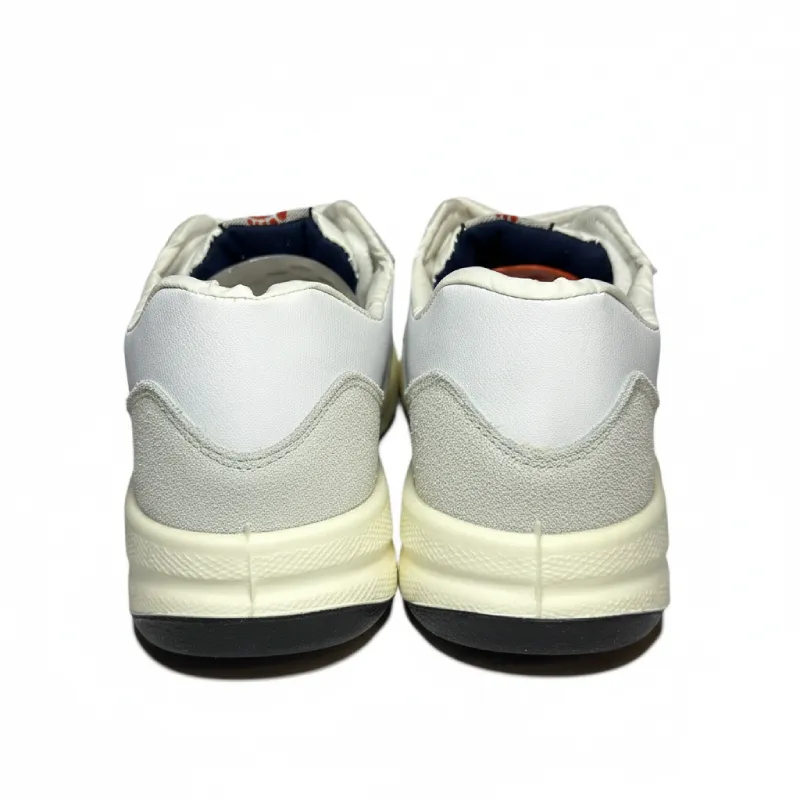 - این کتونی با الهام از مدلهای کلاسیک بسکتبال یا تنیس طراحی شده است. ترکیب رنگهای سفید، طوسی، قرمز و آبی سرمهای یک ظاهر زنده، نوستالژیک و در عین حال شیک ایجاد کرده که هرگز از مد نمیافتد.