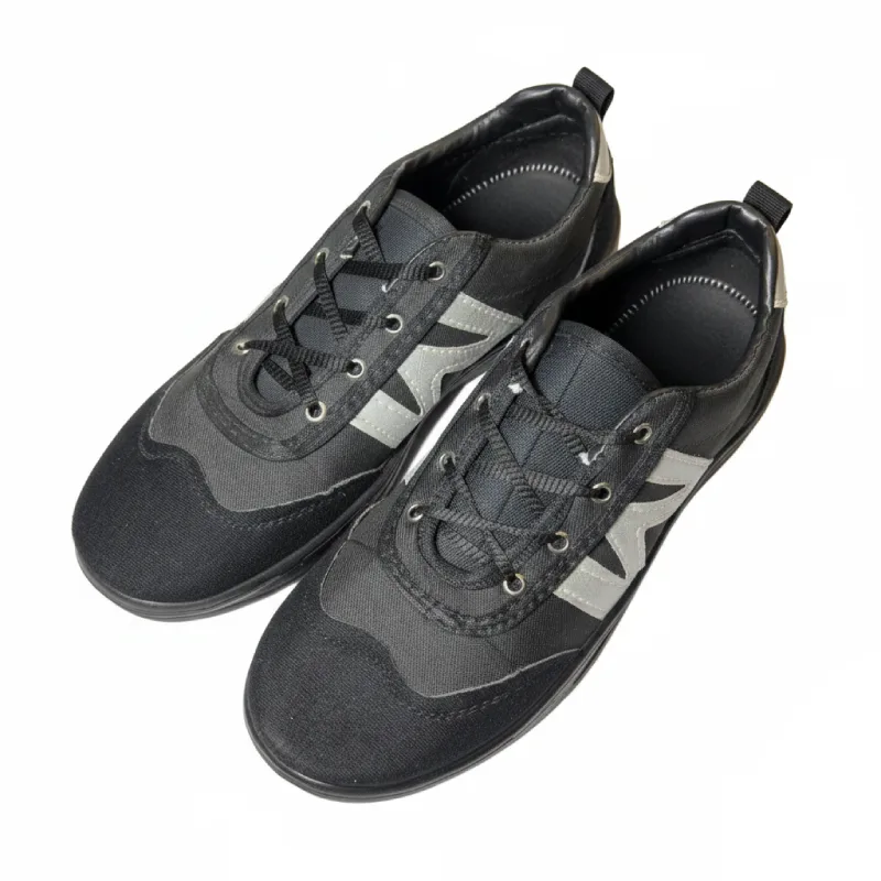 - این کفش با طراحی تکرنگ و شیک، کاملاً مناسب محیطهای کاری غیررسمی، استفاده روزمره و دانشجویی است. رنگ مشکی یکدست زیره و رویه، قابلیت ست شدن فوقالعادهای با انواع شلوار کتان، جین یا لباس فرم شما دارد.